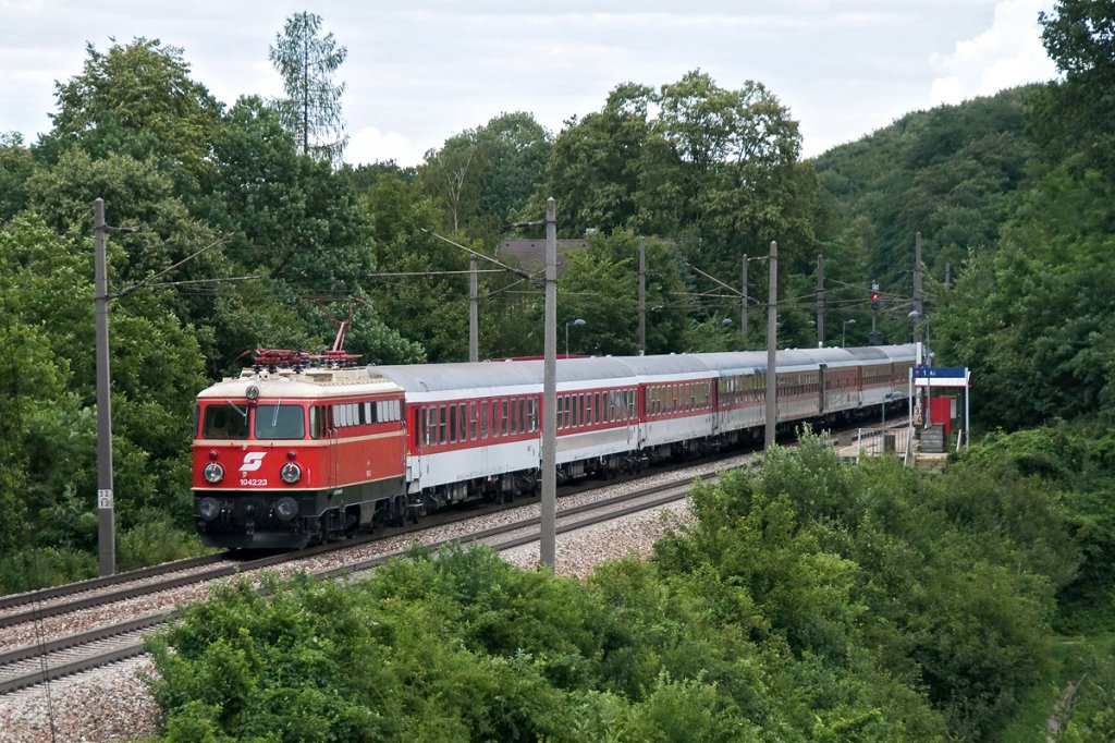 S´ 342-022 zieht EC150 'Emona' durch Maribor-Tabor Richtung Wien. /11.7.2012