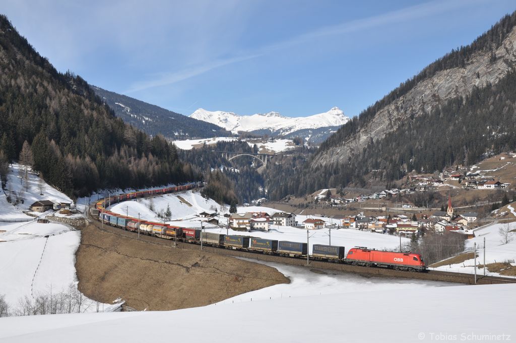 1116 109 mit KLV-Zug am 10.03.2012 bei St. Jodok am Brenner