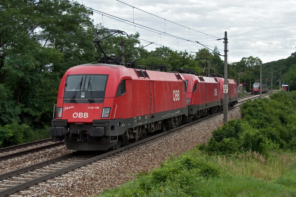 1116 110 mit einem REX nach Linz Hbf am 14.07.2012 unterwegs bei Ingling.