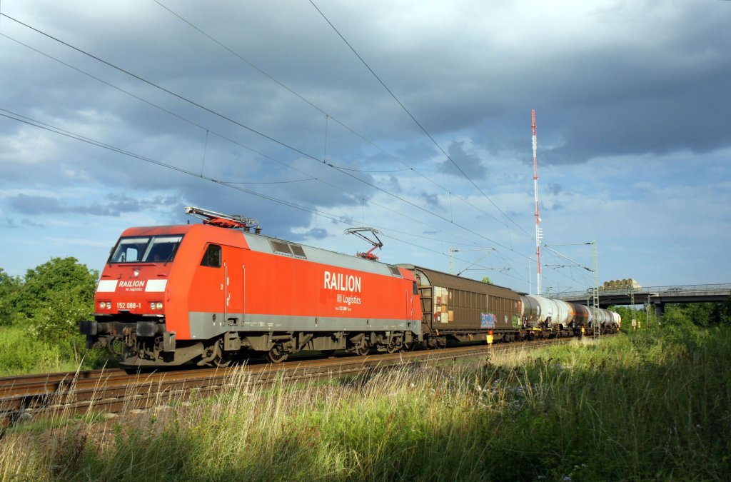 152 135 mit einem Containerzug am 21.06.2011 unterwegs bei Möhren.