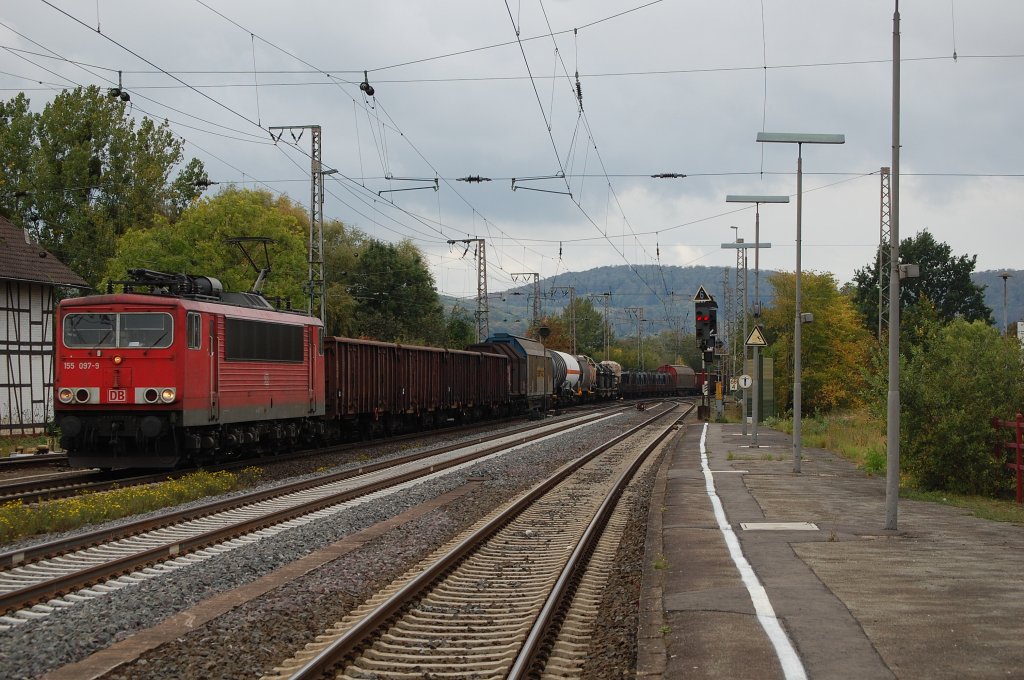155 097-5 mit einem gemischten Güterzug am 07.10.2011 in Kreiensen