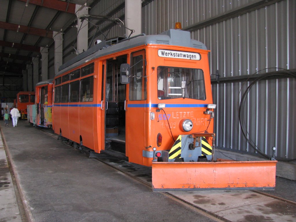Arbeitswagen Nr. 557, aufgenommen anläßlich des "Tages der offenen Tür" im Depot 12, dem Traditionsbereich der Rostock Straßenbahn AG (RSAG), Rostock [19.09.2009]