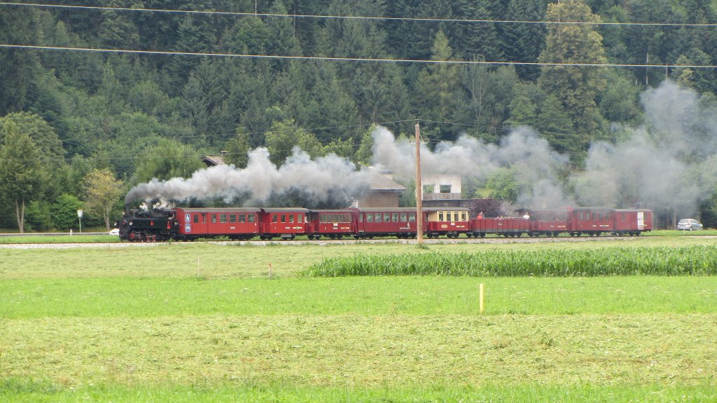 Dampfzug der Zillertalbahn (Jenbach->Mayrhofen) bei Kapfing.(17.7.2012)