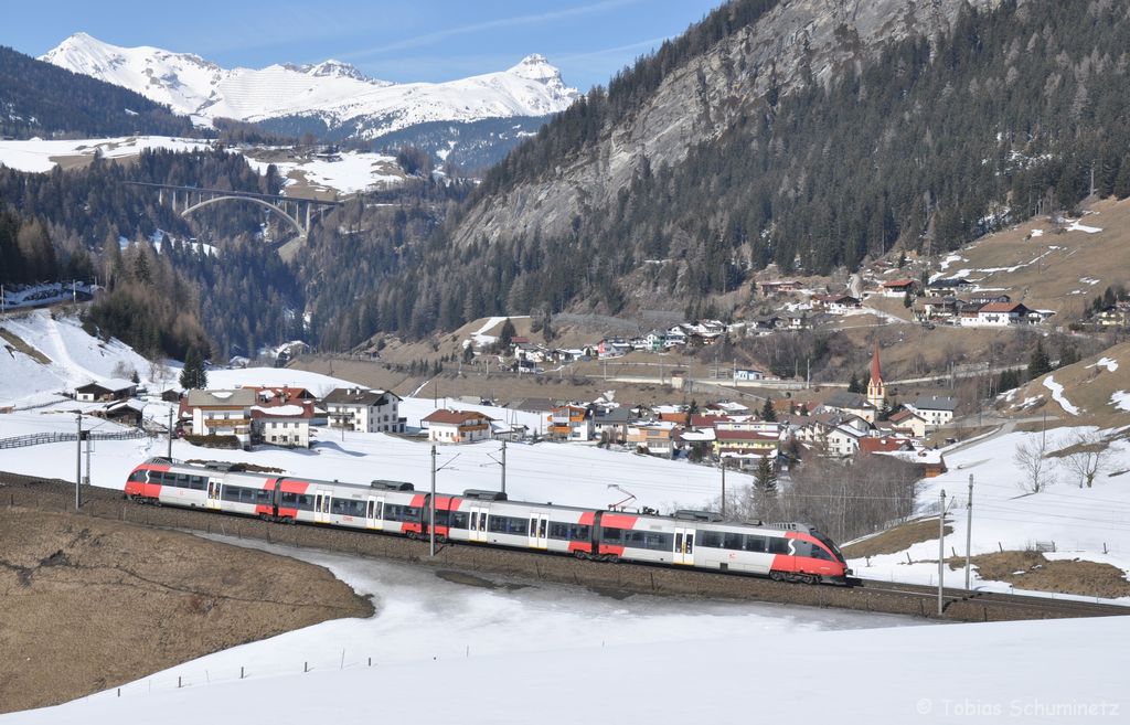 Ein unbekannter 4024 kommt am 10.03.2012 von der Brennerrampe herunter. Hier bei St. Jodok.