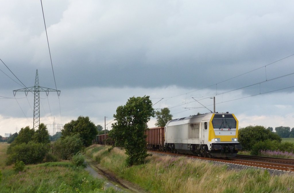 Eine Voit Maxima fuhr am 17.07.2012 mit einem Kieszug von Emden gen Süden, hier südlich von Leer.