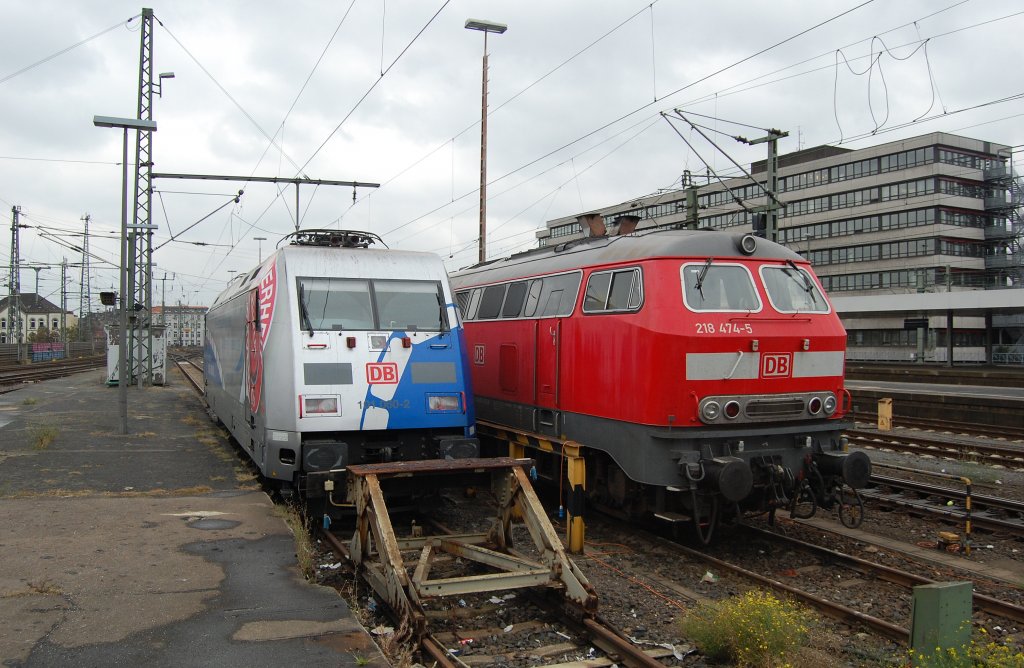 Generationen-Treff: Links 101 060 "Bundespolizei", rechts 218 474-5. 10.10.2011, Hannover Hbf