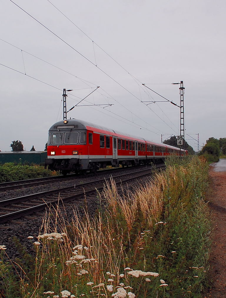 "Und täglich grüßt das Murmeltier!" war einmal der Titel eines Filmes, den man in abgewandelter Form auf dieses Bild anwenden könnte. Am Freitag den 13.7. tat die Lok auch schon den Dienst als RE8 Verstärkerzug nach Kaldenkirchen und an dem folgenden Montag den 16.7.2012 hat sie den gleichen Dienst.......also quasi ein déjavue.
