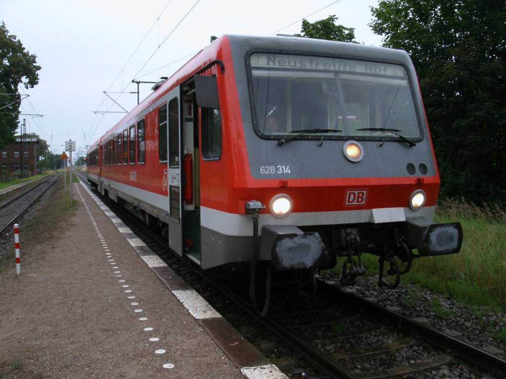 Kurze Verschnaufpause für das Lok-und Zugpersonal vom 628 314,auf der Fahrt von Stralsund nach Neustrelitz,am 14.Juli 2012,in Sternfeld.Grund ist die planmäßige Zugkreuzung mit der OLA.