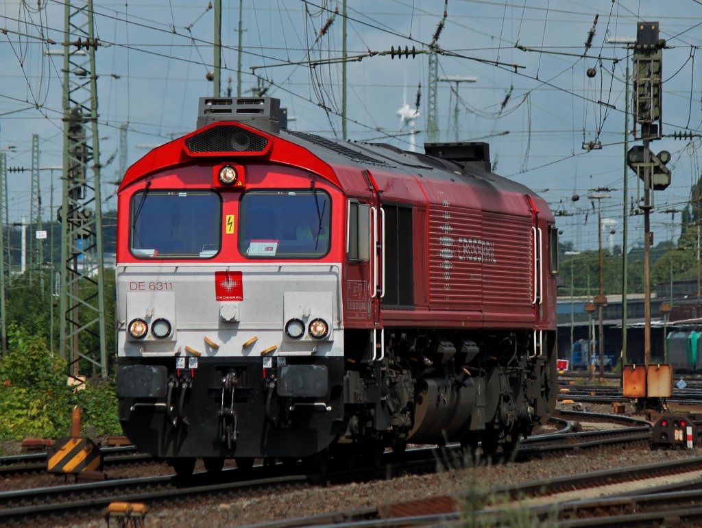 Nachdem die Class66 DE6311 "Hanna" von Crossrail am 16.07.2012 einen Containerzug über die Montzenrampe nach Aachen West gebracht hat, fährt sie nun als Lz zurück nach Belgien.
