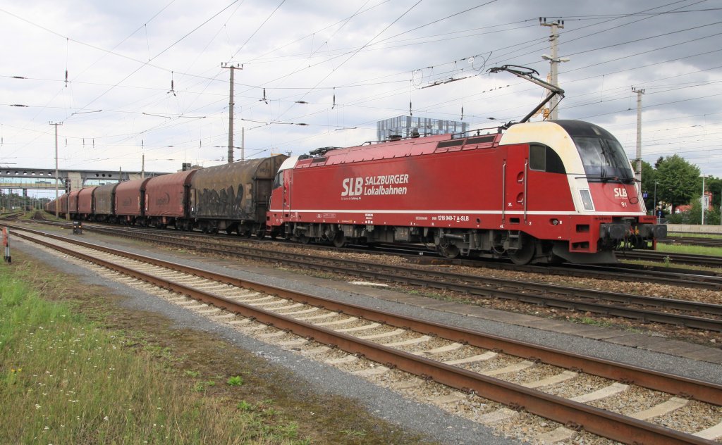 SLB 91 (1216 940) und die eingebundene CargoServ 1216 930 unterwegs im Bahnhof Wels. Aufgenommen am 17. Juli 2012.