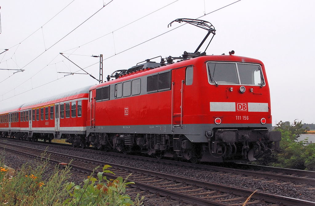 111 137-6 fuhr am 17.07.2012 mit einem RE von Emden nach Münster, hier südlich von Leer.