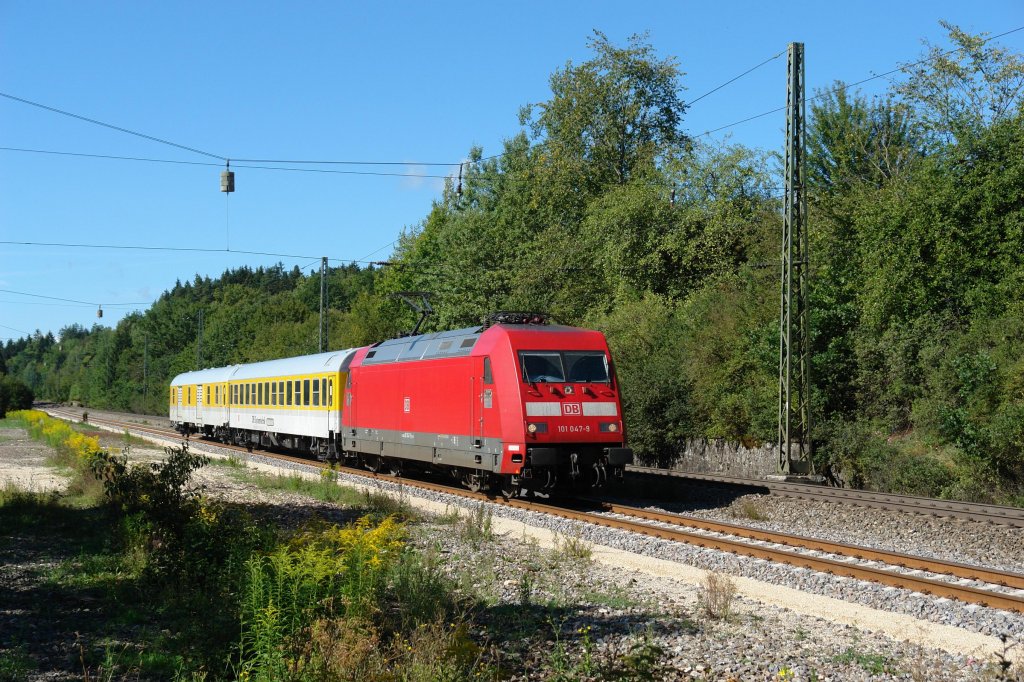 101 047 mit einem Messzug am 06.09.2011 unterwegs bei Möhren.