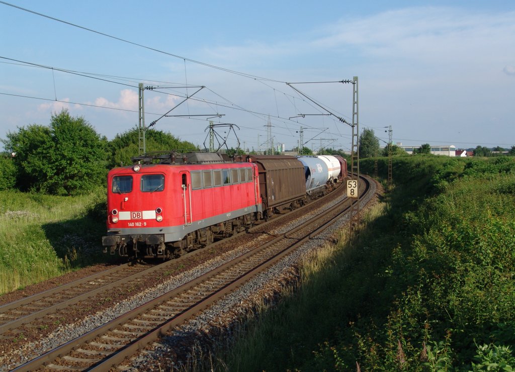 140 162 mit einem Güterzug am 10.06.2008 unterwegs bei Plattling.