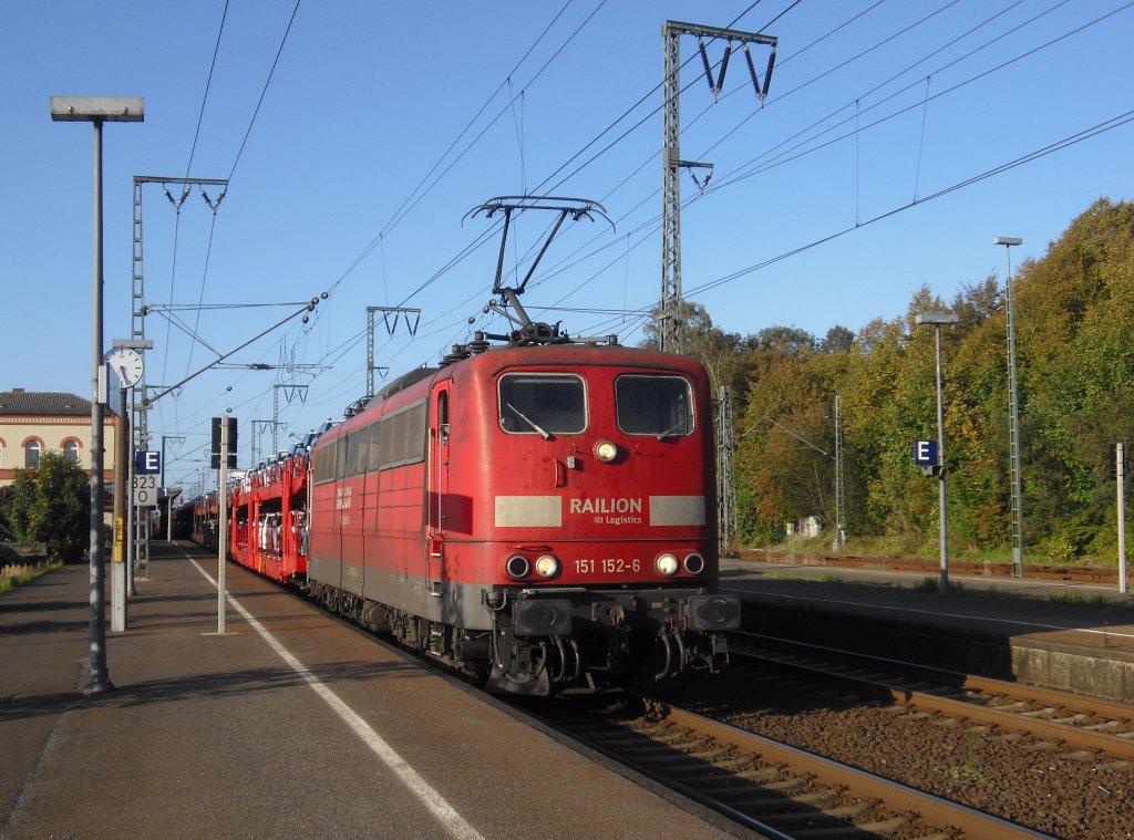 151 152-6 stand im Oktober 2011 mit einem Güterzug in Leer und fuhr weiter gen Süden.