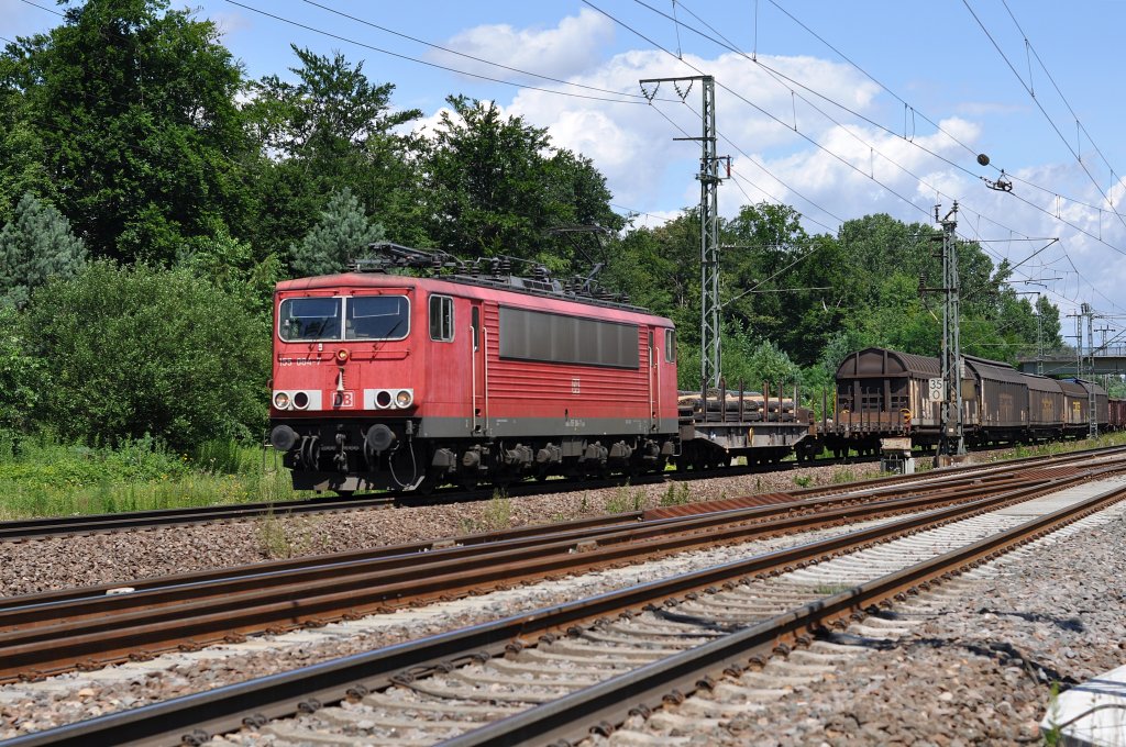 151 149-2 zieht am 19. Juli 2012 einen gemischten Güterzug durch Kronach in Richtung Saalfeld.