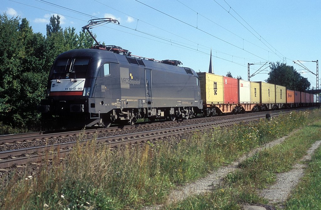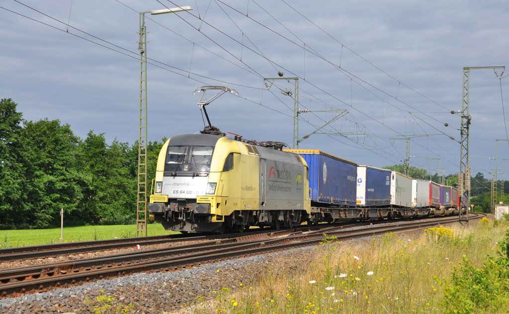 ES 64 U2-011 MRCE Dispolok-TXL mit KLV-Zug in Richtung Ansbach.Bild entstand in Oberdachstetten am 18.7.2012