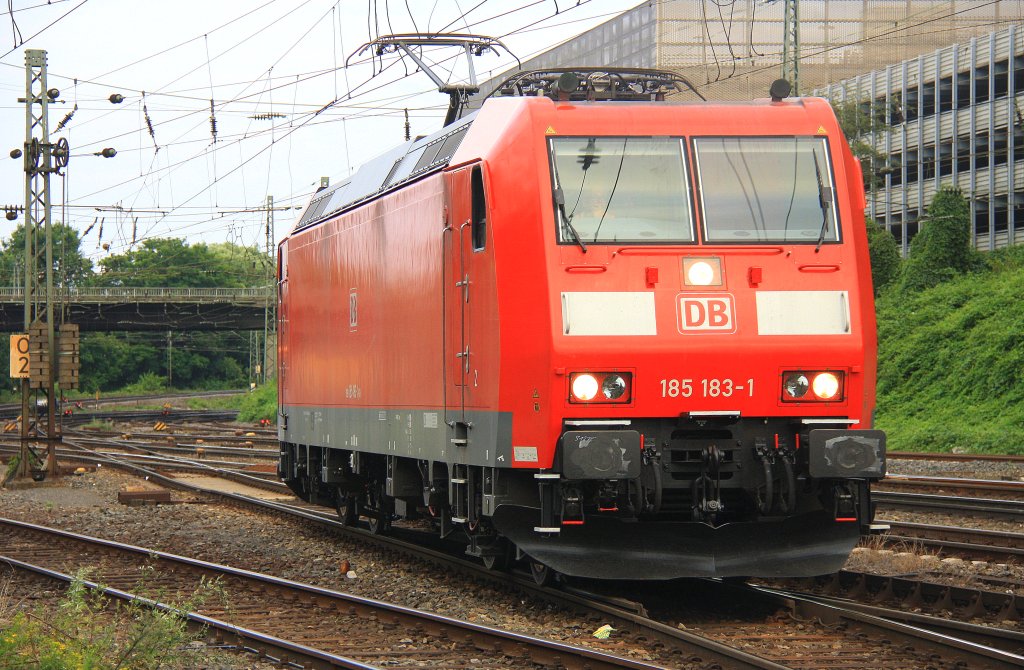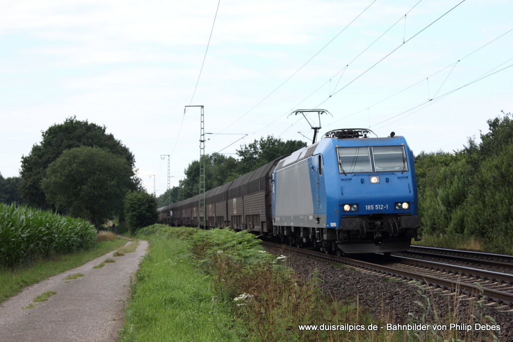 185 512-1 fährt am 16. Juli 2012 um 9:36 Uhr mit einem Güterzug durch Osterholz Scharmbeck