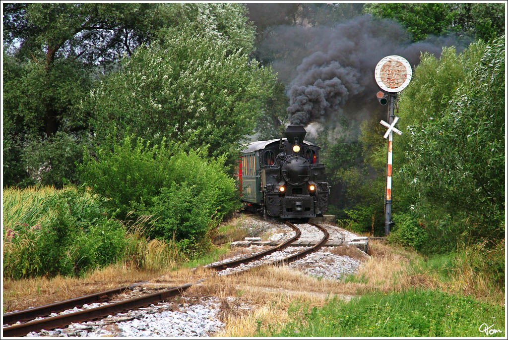 764.411R Model Resita Nr. 619 (ehemalige rumänische Waldbahnlokomotive) des Stainzer Flascherlzuges bei der Ausfahrt aus Preding.