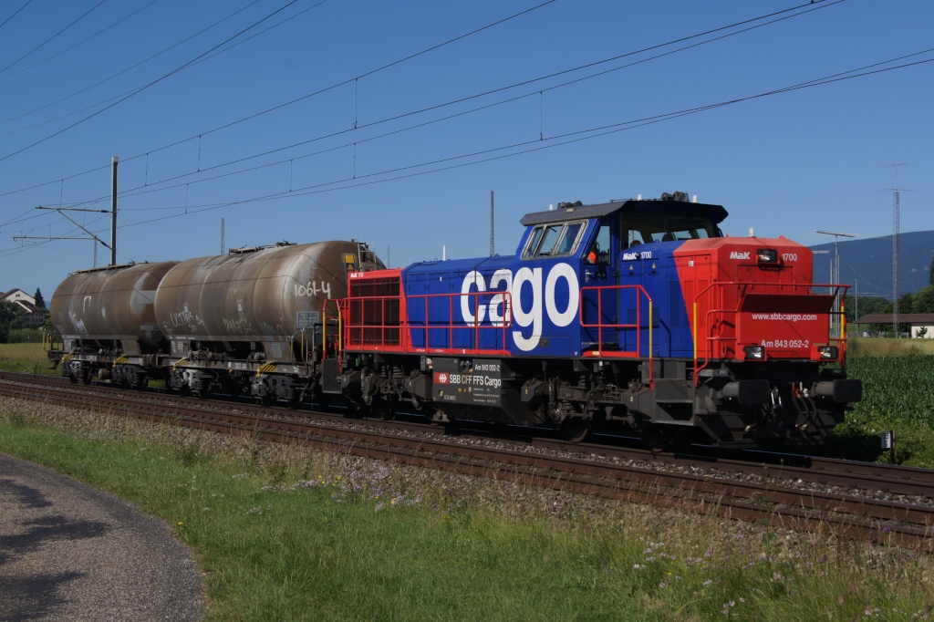 Am 843 052-2 zieht am 22.6.12 zwei Tankwagen von Nyon Richtung Gland.