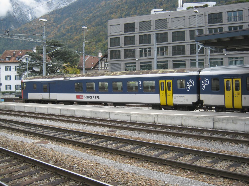 Mittlerweile Vergangenheit; ein IR Konstanz-Biel beim Zwischenhalt in Solothurn. Der Zug wurde ausnahmsweise mit einem 2er Modul verstärkt, das spezielle daran ist der 2. Wagen. Es handelt sich dabei um einen noch grünen B EWIV (mittlerweile sind alle B weiss), 04.09.2011.