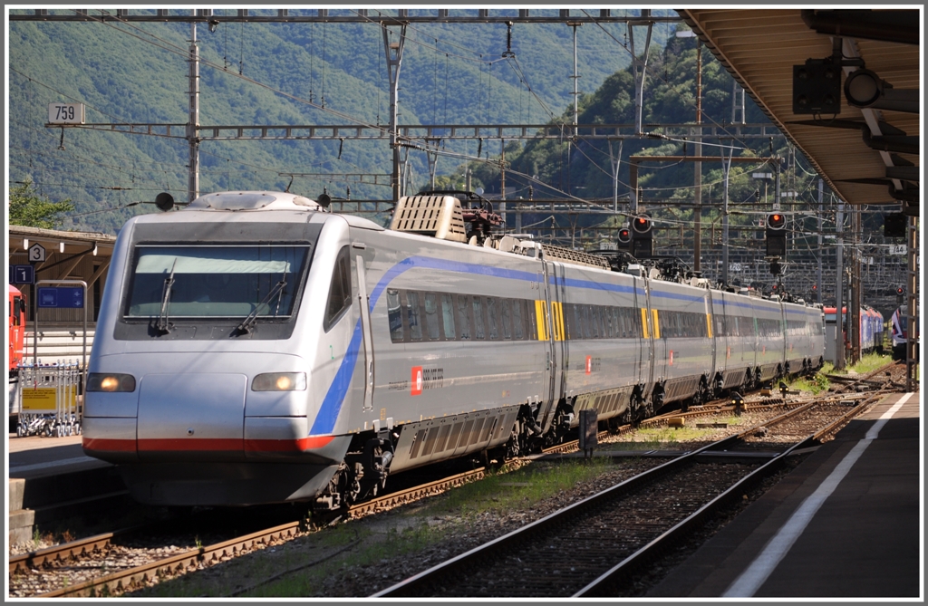EC153 Zürich HB - Milano C. wird mit einem ETR 470 SBB geführt und legt einen Zwischenstop in Bellinzona ein. (16.07.2012)
