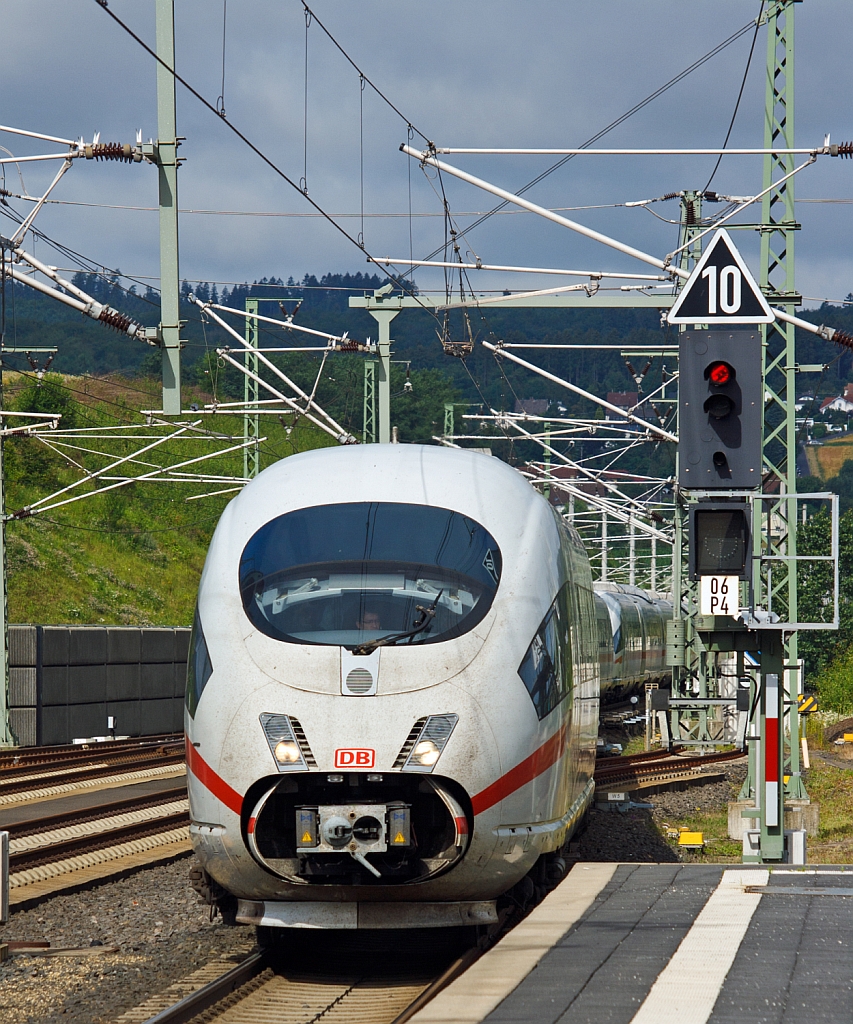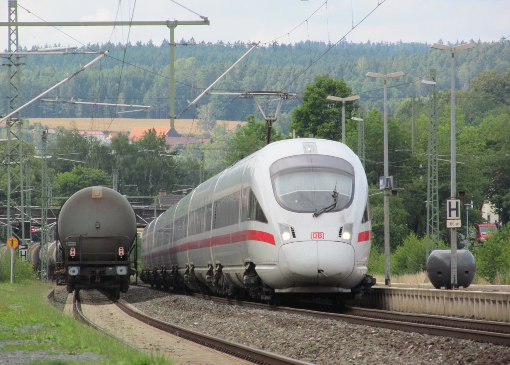 Ein ICE-T auf der Fahrt nach München Hbf durchfährt am 18. Juli 2012 den Bahnhof Kronach.