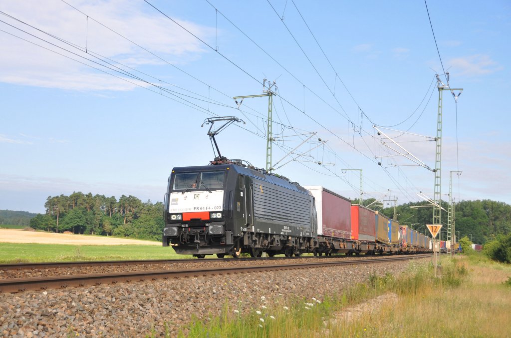 ES 64 F4-023 MRCE Dispolok-TXL mit KLV-Zug in Richtung Ansbach.Aufgenommen in Oberdachstetten am 18.7.2012