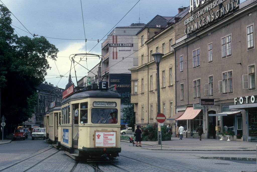 Linz ESG SL E Blumauer Platz am 16. Juni 1971. - Scan eines Diapositivs. Kamera: Leica CL.