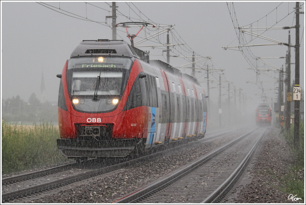 Sommergewitter im Aichfeld - 4024 046 fährt mit R 1713 von Mürzzuschlag nach Friesach.