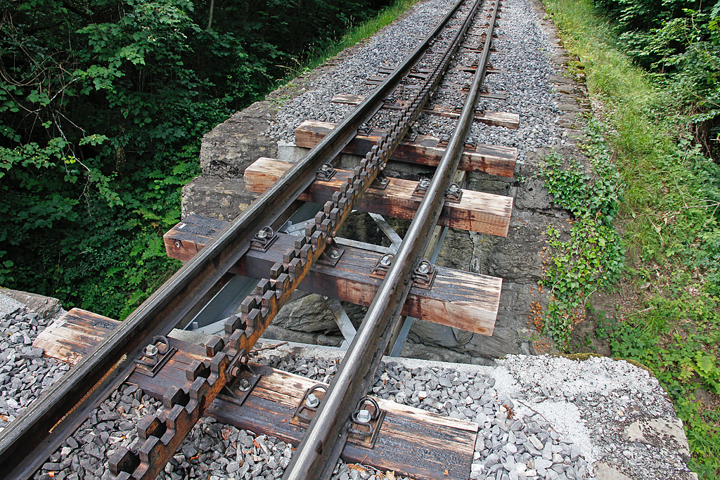 Speziell für Armin nochmals ein BRB-Schienenbild: Mini-Brücke mit Holz-Schwellen, dahinter folgen die Y-Schwellen. Während Daniel Blatter da einfach drüber läuft, muss ich es zwangsläufig auf allen Vieren probieren... 13. Juli 2012, 14:50