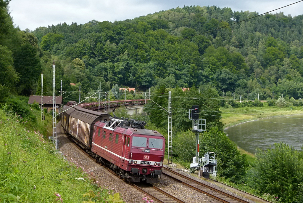 180 016-8 ist mit einem gemischten güterzug am 18.07.2012 in Königstein