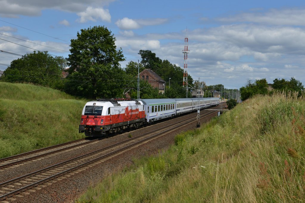 370 009 "Stadion Gdansk" mit EC 54 von Gdynia nach Berlin am 21.07.2012 unterwegs bei Slubice.