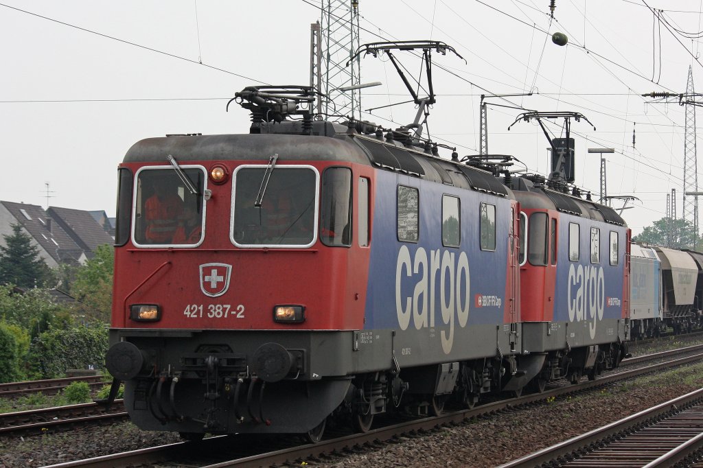 SBB Cargo 421 387 und 421 386 am 2.5.12 als Lz bei der Durchfahrt durch Ratingen-Lintorf.