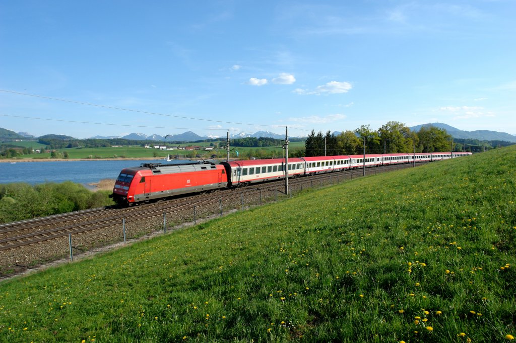 101 039 mit einem OIC von Salzburg nach Wien West am 25.04.2009 unterwegs bei Seekirchen am Wallersee.