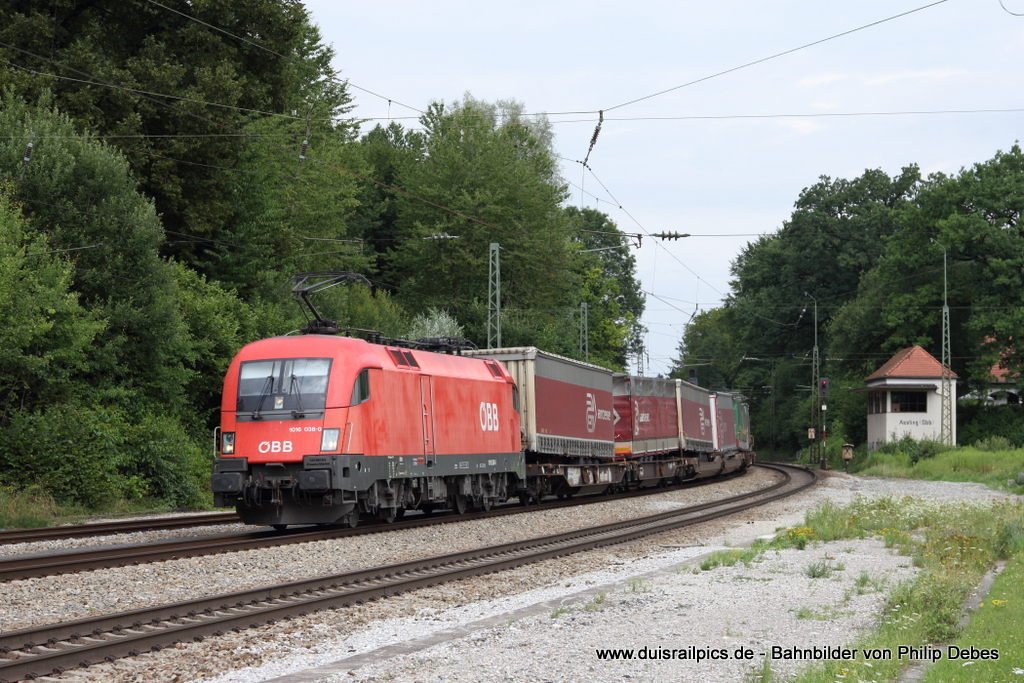 1016 038-0 (ÖBB) fährt am 20. Juli 2012 um 11:04 Uhr mit einem Güterzug durch Assling