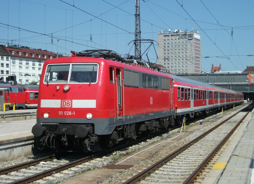 111 026 steht am 27.Juli 2012 mit der RB 59523 nach Garmisch-Partenkirchen im Münchner Hbf.