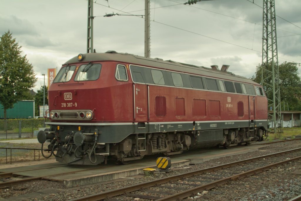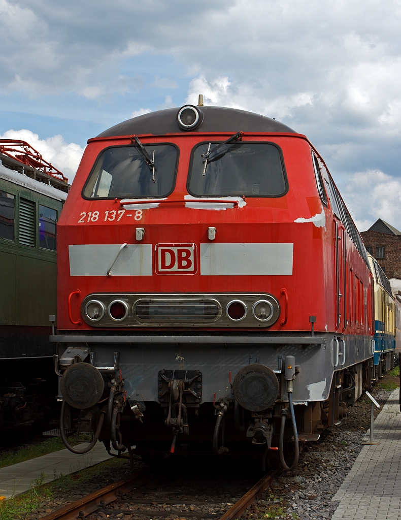 Die 218 137-8 am 18.07.2012 im DB Museum Koblenz, leider blättert der Lack schon ab. Die V160 wurde 1971 bei Henschel unter der Fabriknummer 31539 gebaut, die z-Stellung erfolgte 2010. Loks der Baureihe 218 sind das zuletzt entwickelte Mitglied der V-160-Lokfamilie.
