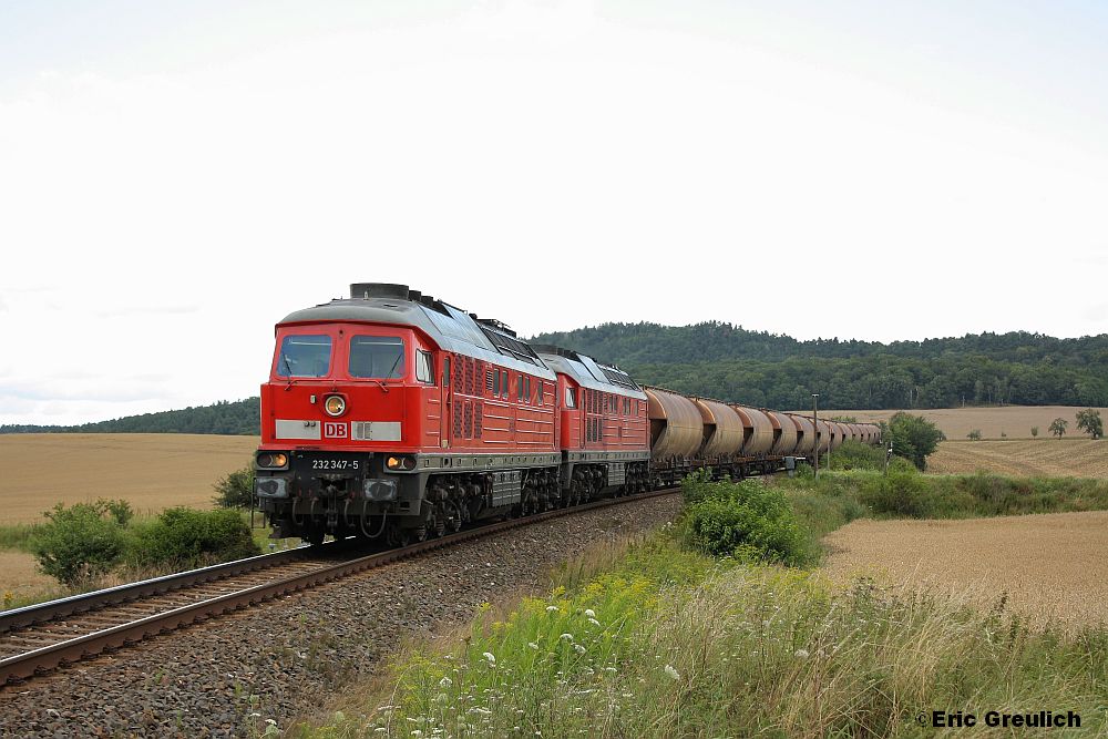 247 058 begegnet am 04.07.12 den mit 247 048 und 247 054 bespannten Kesselwagenzug zum Wackerwerk in Tüßling.