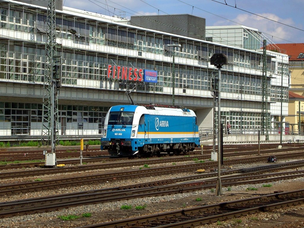 Die 183 002 am 26.08.2008 bei einer Rangierfahrt im Regensburger Hbf.