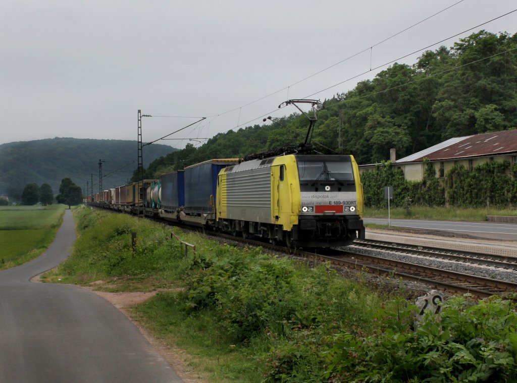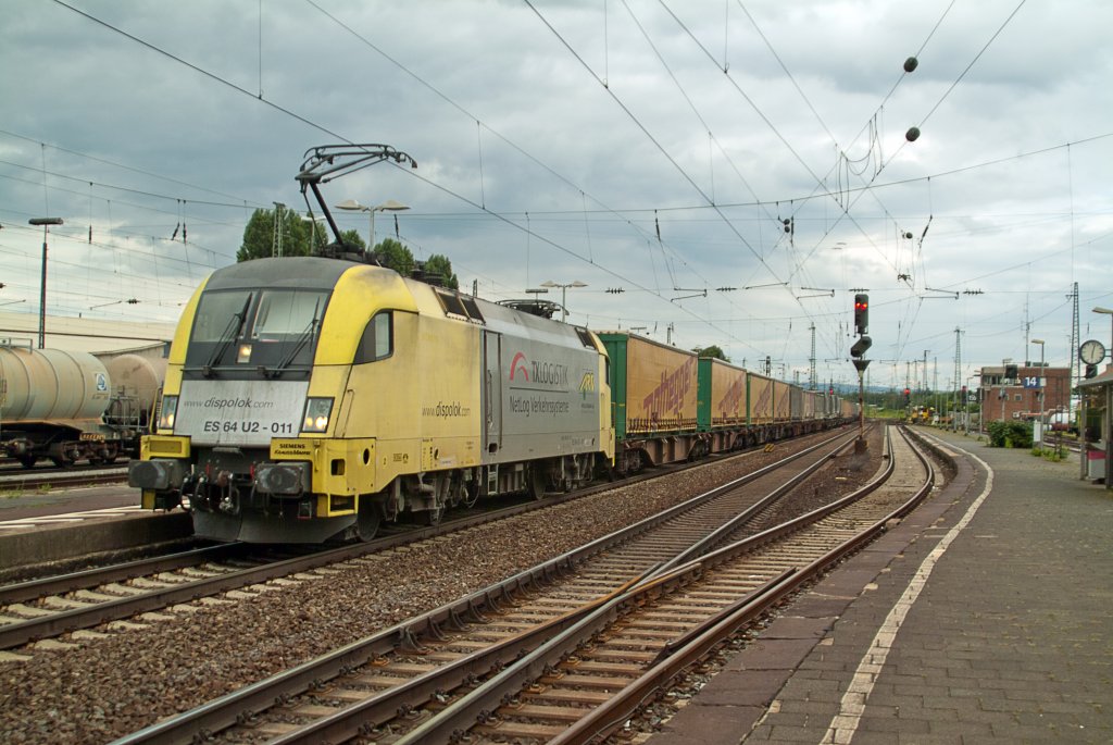 Die ES 64 F4-030 mit einem KLV-Zug am 02.06.2012 unterwegs bei Gambach.