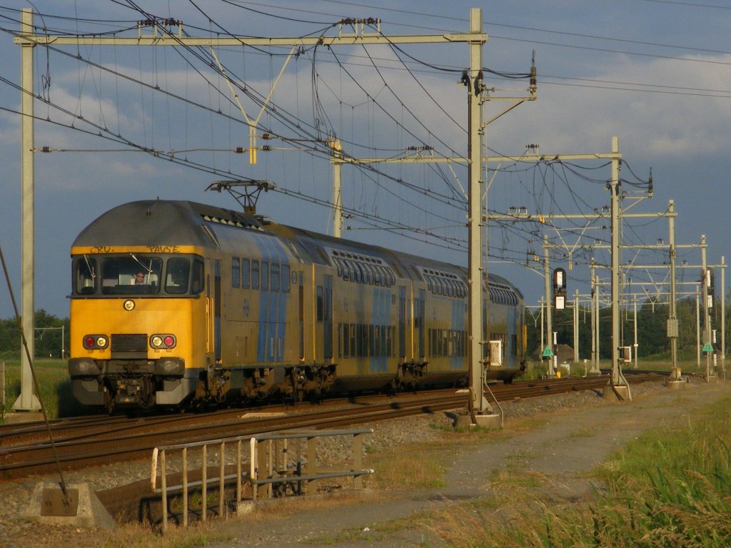 Doppelstockgarnitur durchfahrt Keverdijksepolder richtung Almere CS als Ingtercity am Abend des 18.6.12