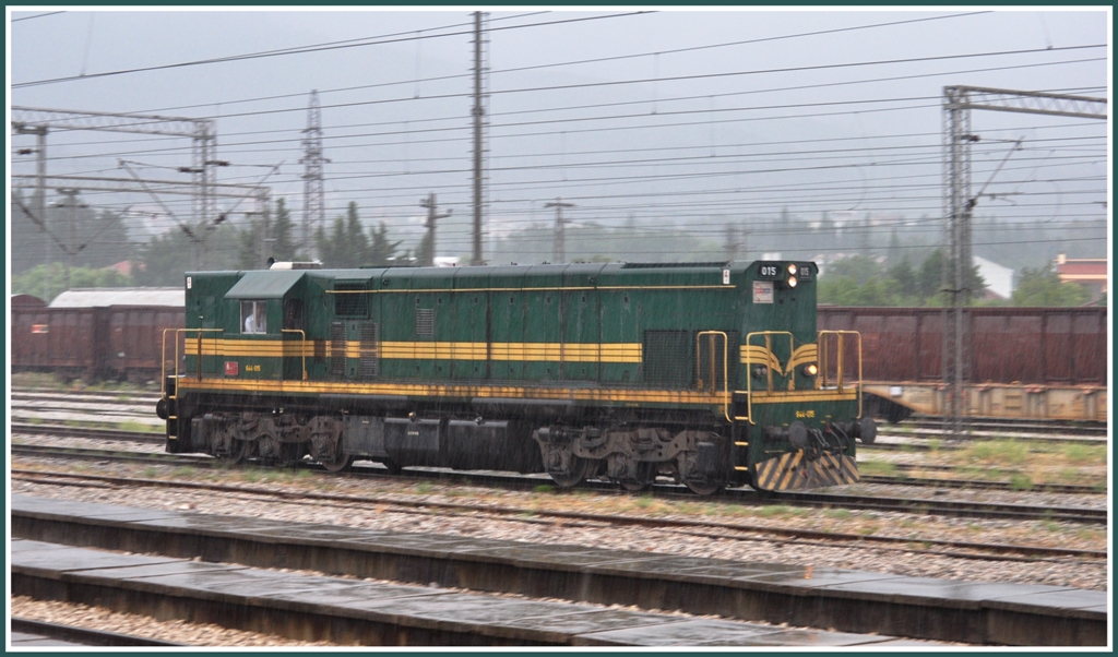 Nach fünf Wochen Sonnenschein und Dürre endlich ein Tag Regen in Montenegro und etwas Abkühlung. 644-015 rangiert in Bar. (24.07.2012)