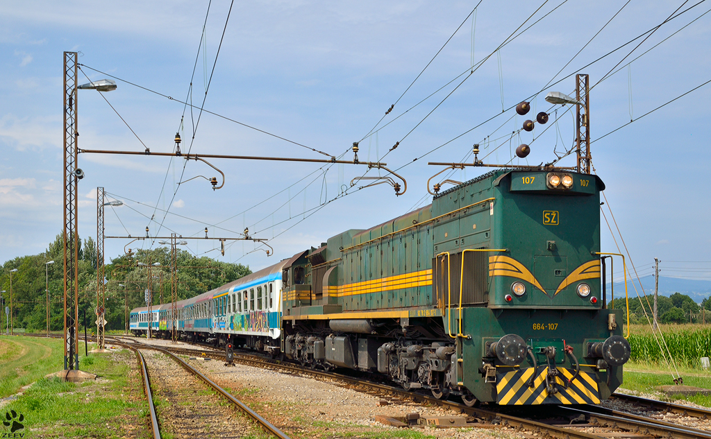 S´ 664-107 zieht MV247 'Citadella' durch Pragersko Richtung Budapest. /24.7.2012