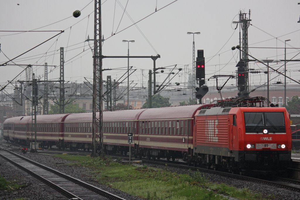WLE 81 am 6.5.12 mit einem Sonderzug bei der Einfahrt in Düsseldorf Hbf.
