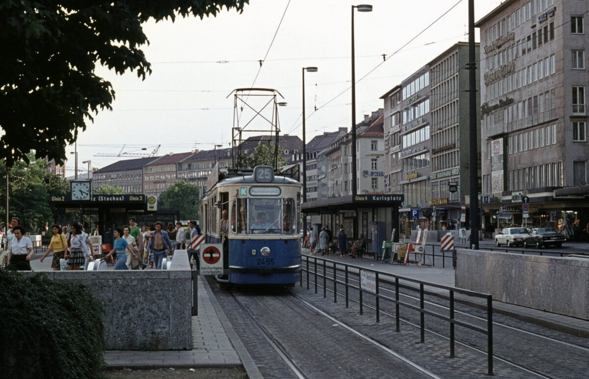 München MVV Tramlinie 25 (M4.65 2455) Karlsplatz (Stachus) am 17. August 1974. - Scan eines Diapositivs. Kamera: Minolta SRT-101.