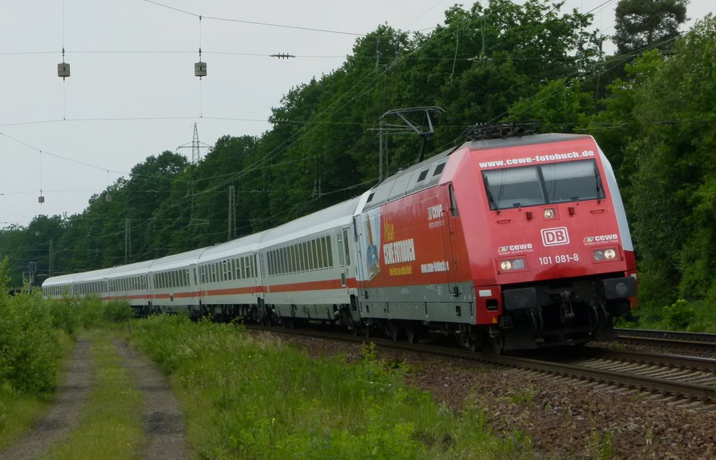 101 081-8 (Cewe Mein Fotobuch) ist als IC 2055 Saarbrücken - Heidelberg am 31.05.2012 in Kennelgarten