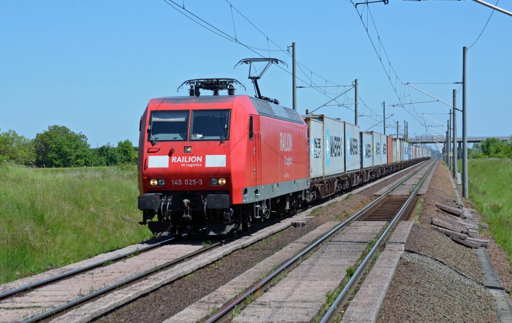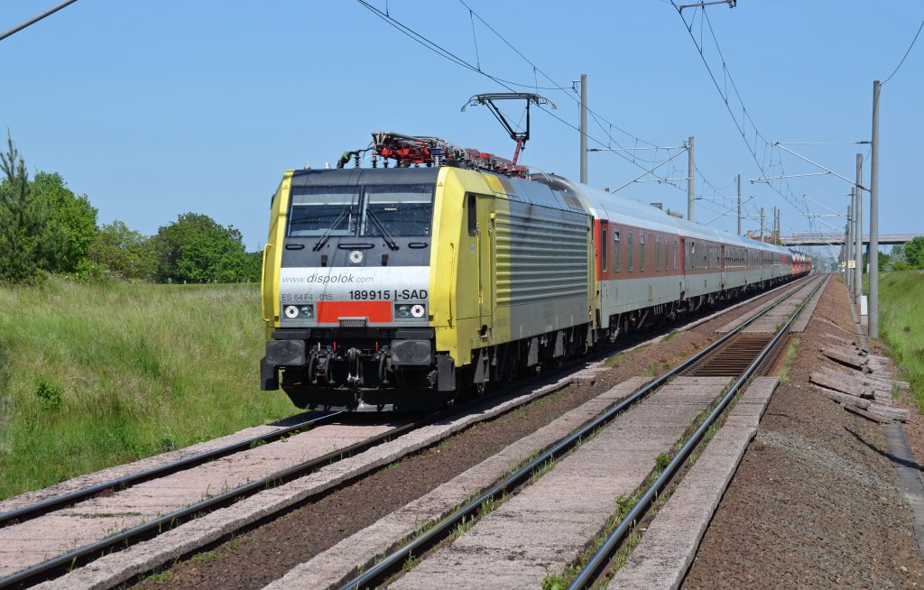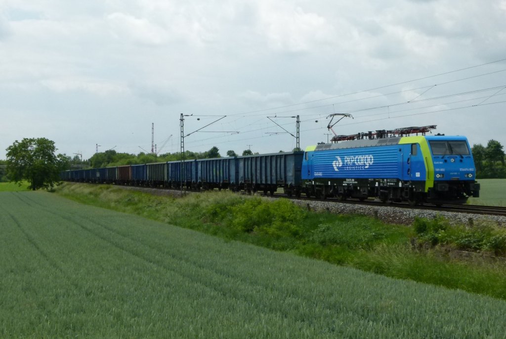 ES 64 F4 802 der PKP Cargo ist mit einem leeren Schüttgutwagenzug am 01.06.2012 bei Lützelsachsen