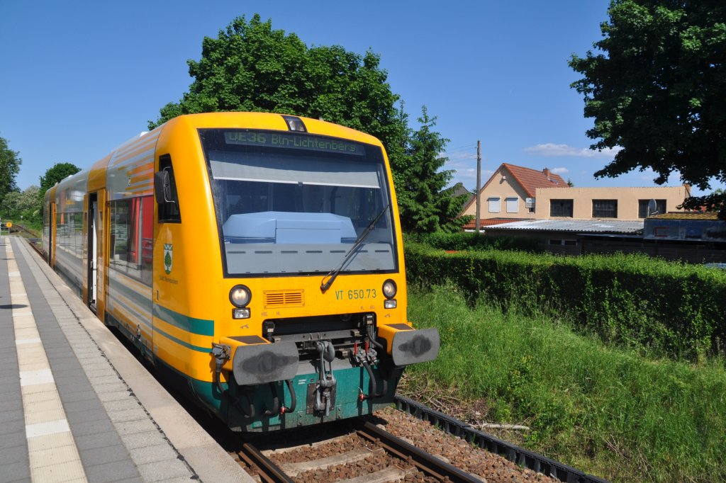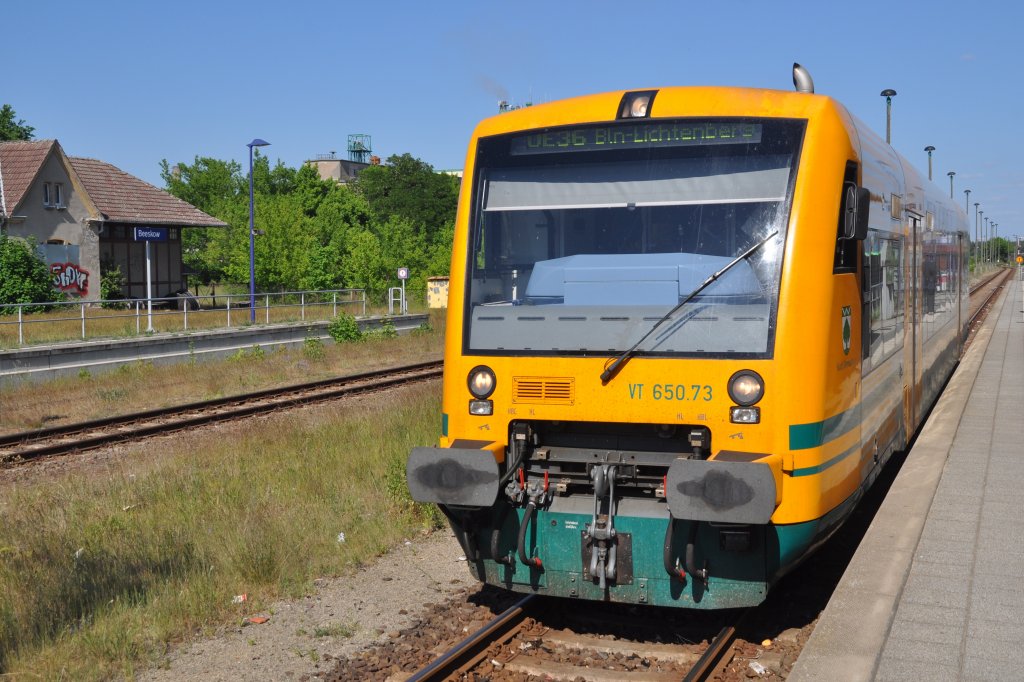 BEESKOW (Landkreis Oder-Spree), 25.05.2012, VT 650.73 als OE36 nach Berlin-Lichtenberg im Bahnhof Beeskow
