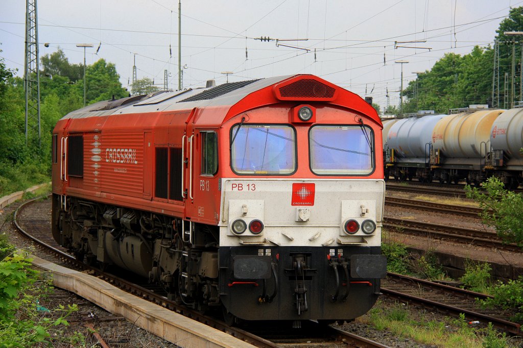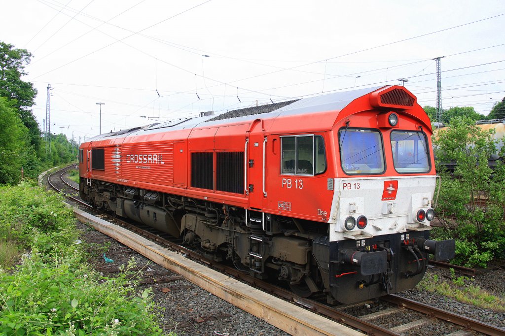 Die Class 66 PB13 "Ilse" von Crossrail steht in Aachen-West am bei Wolken am 1.6.2012.