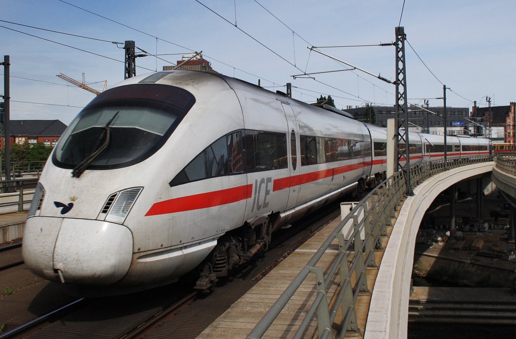 Hier 605 510-8 "Wehrheim(Taunus)" als ICE38 von Koebenhavn H nach Berlin Ostbahnhof, bei der Ausfahrt am 26.5.2012 aus Berlin Hbf.